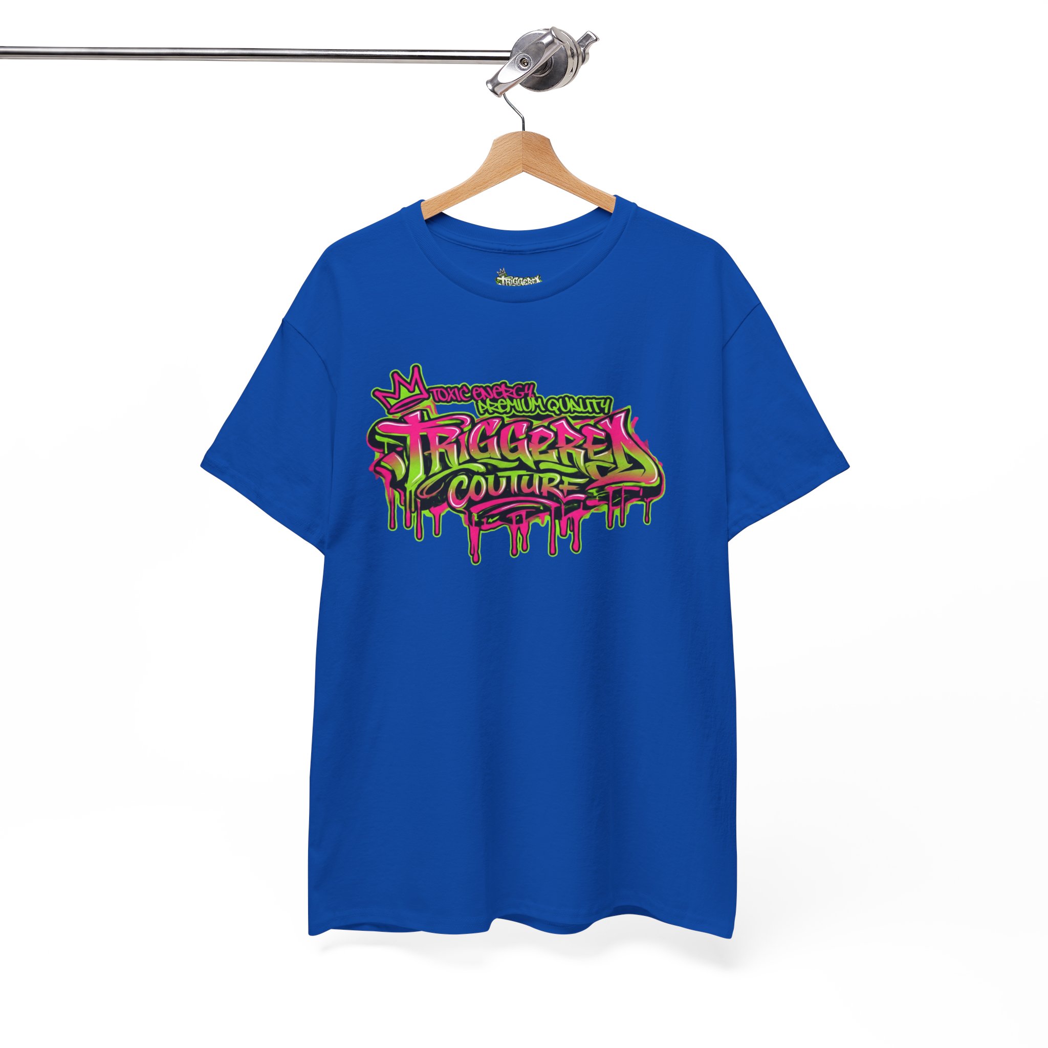 – DTF and DTG mixed printing for sharp, detailed neon graphics (sleeves & neck printed with DTF)
